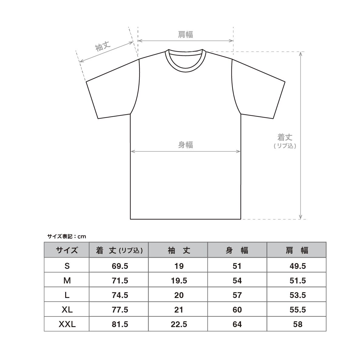 袖丈: S 19cm, M 19.5cm, L 20cm, XL 21cm,XXL 22.5cm