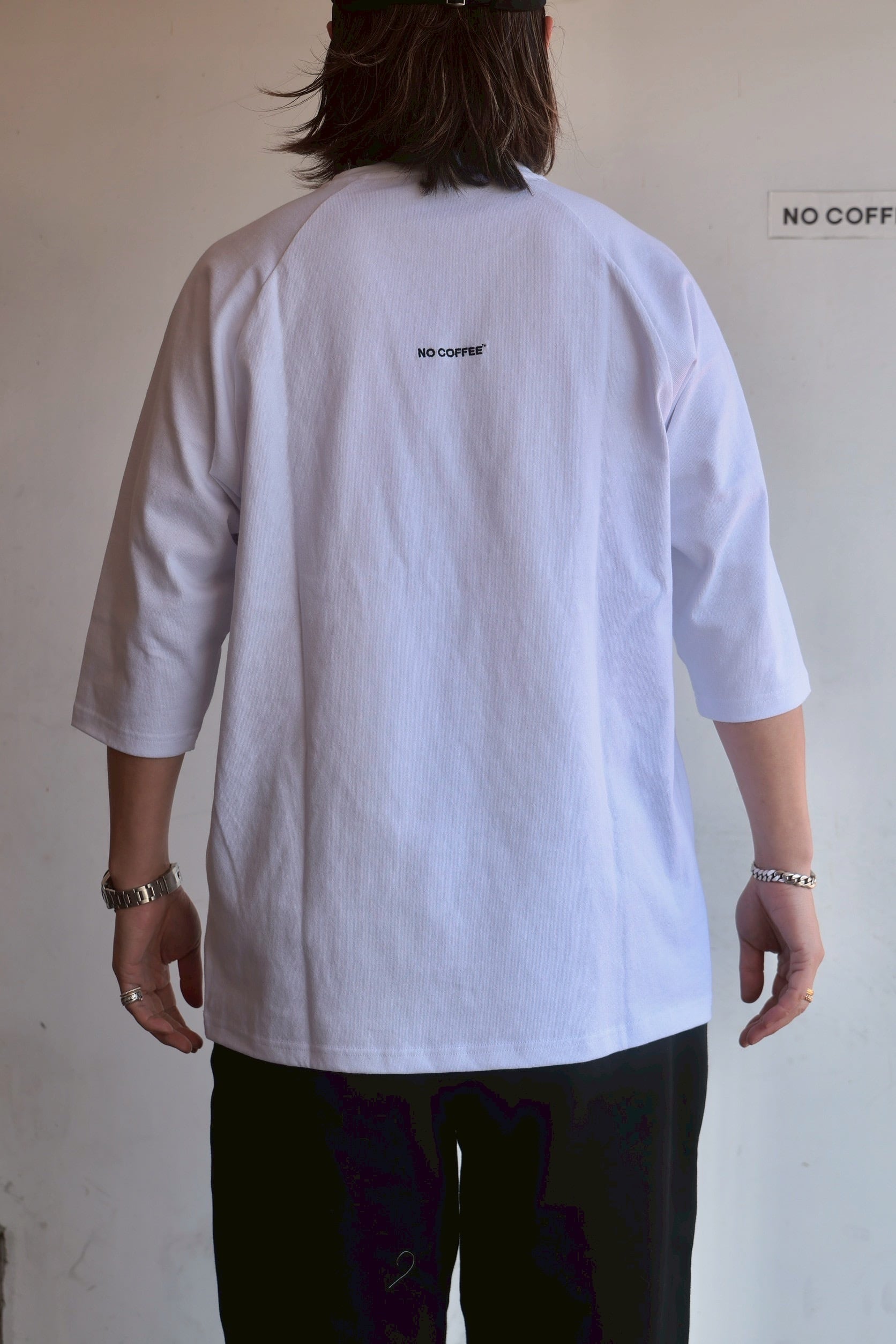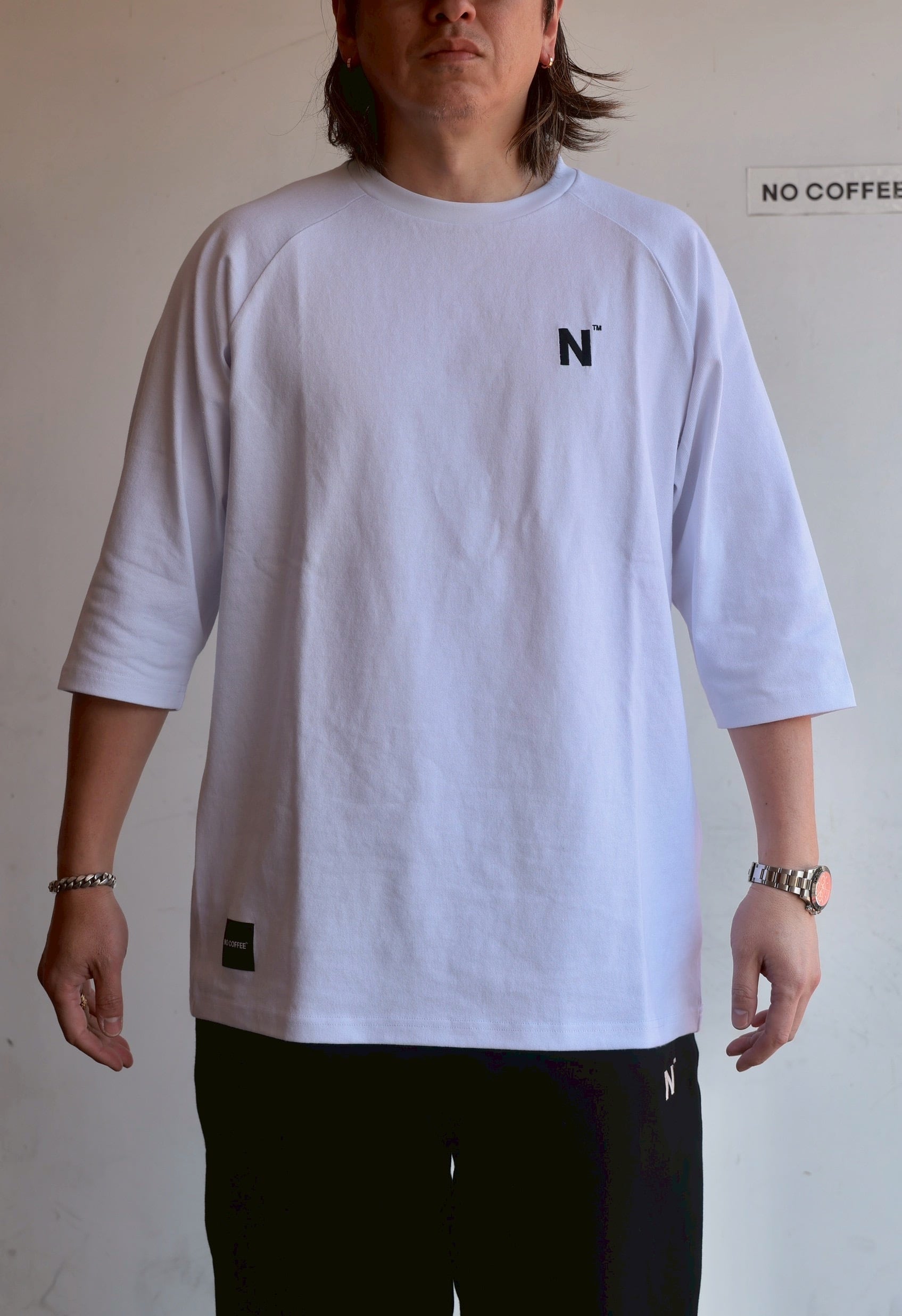 シンプルに左胸にNロゴを配置した、七分丈のラグランTシャツ。