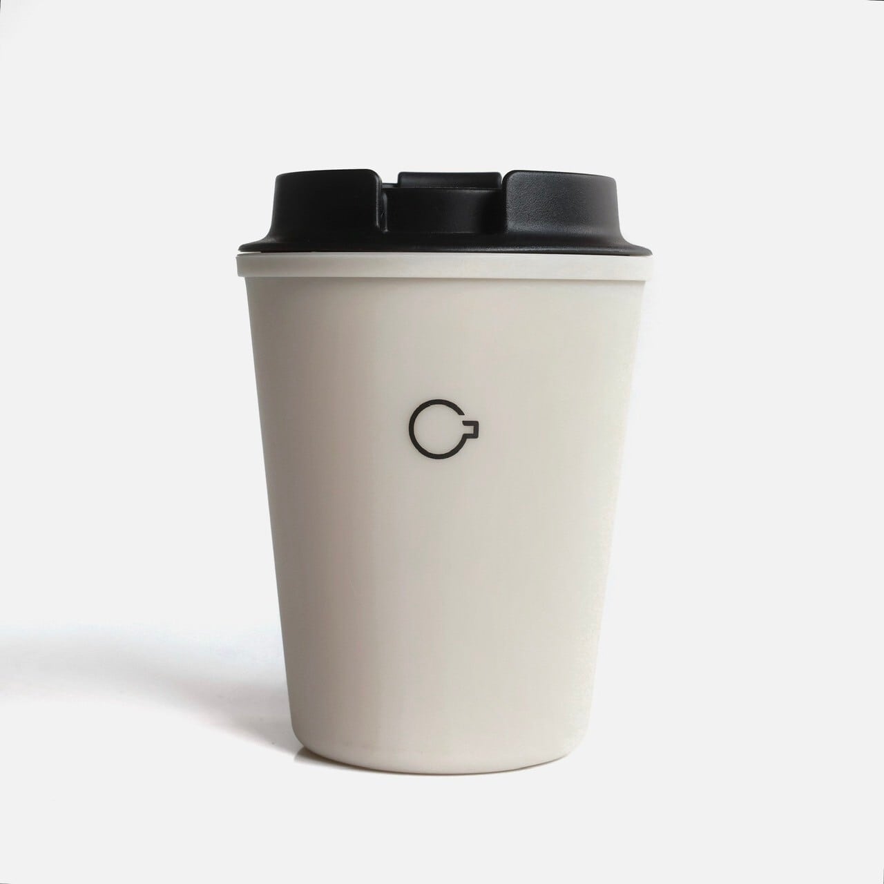 テイクアウトカップをイメージしたデザイン。表面には”NO COFFEE”ロゴ、裏面にはアイコンを配置。