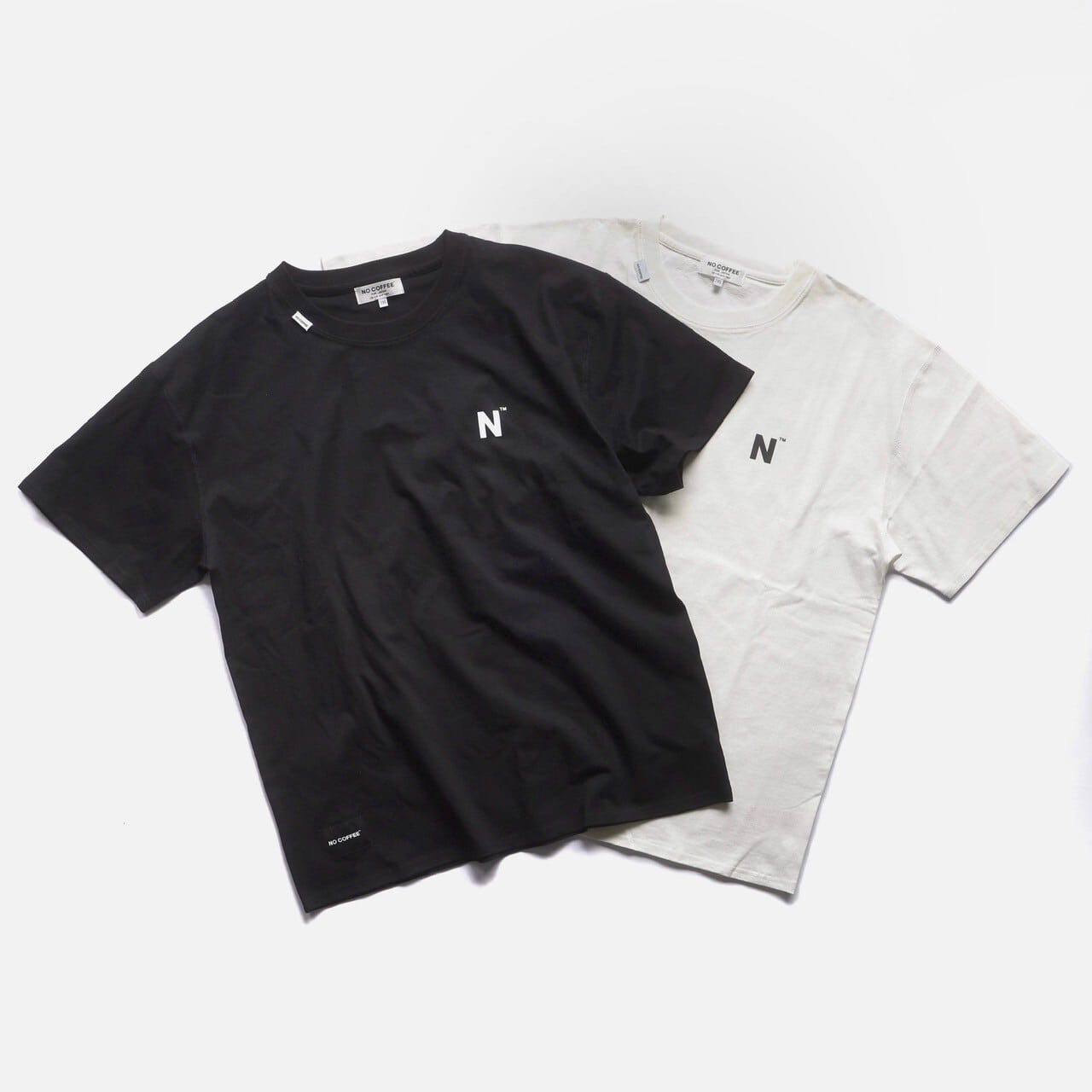 首元にピスネーム、右下にはNO COFFEE織ネームを配置。