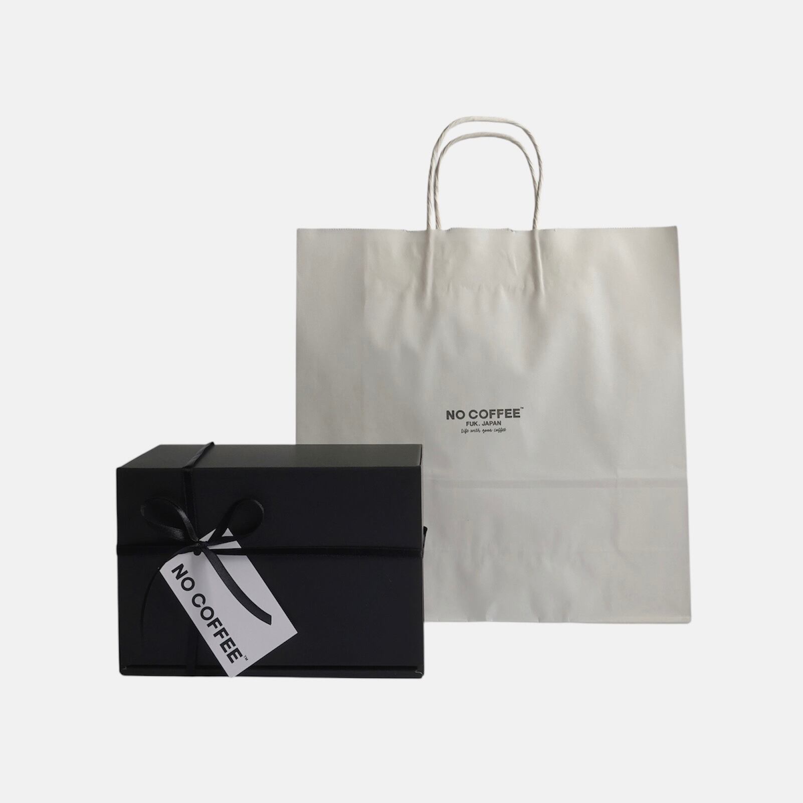 お渡し用にNO COFFEEのロゴ入り手提げ紙袋をお付けいたします。